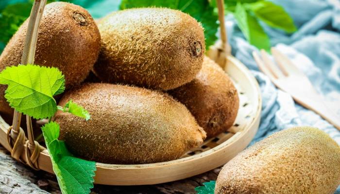 因猕猴喜食,故名猕猴桃,亦有说法是因为果皮覆毛,貌似猕猴而得名,是一种品质鲜嫩,营养丰富,风味鲜美的水果。猕猴桃的质地柔软,口感酸甜。果形一般为椭圆状,早期外观呈黄褐色,成熟后呈红褐色,表皮覆盖浓密绒毛,果肉可食用,其内是呈亮绿色的果肉和一排黑色或者红色的种子。味道被描述为草莓、香蕉、菠萝三者的混合。