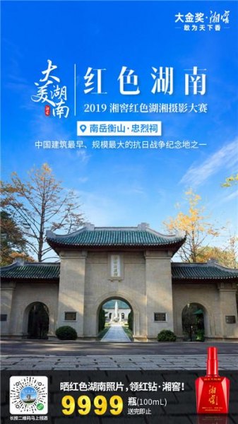 作为湖南美酒的代表,湘窖酒业一直以传承湖南红色精神为己任。恰逢新中国成立70周年,湘窖酒业打造了“大美·红色湖南2019湘窖红色湖南摄影大赛”,号召广大湘窖粉丝共同弘扬红色文化,传承红色精神。用我们的镜头记录伟人故里、抗战遗址、长征足迹、革命之路等红色景点,缅怀革命先烈,展现红色湖南的精气神韵,为新时代的湖南增光添彩。