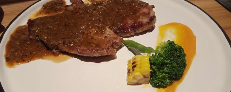 所需食材:牛排一整块、黄油20g、牛奶适量、橄榄油适量、黑胡椒研磨粒适量、海盐适量、蒜瓣3块、小番茄两个、西兰花两颗、玉米小段两块
