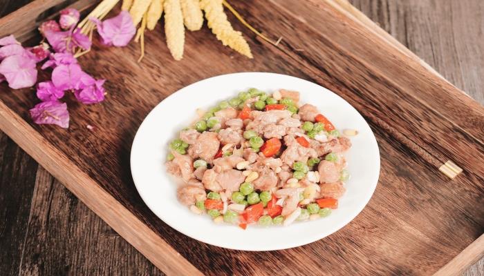 1、所需食材:鸭肉半只,红椒半个,豌豆30克,松子10克,大葱1段,生姜1块,大蒜2瓣。所需调料:淀粉1汤匙,生抽1汤匙,盐1茶匙,料酒1汤匙。