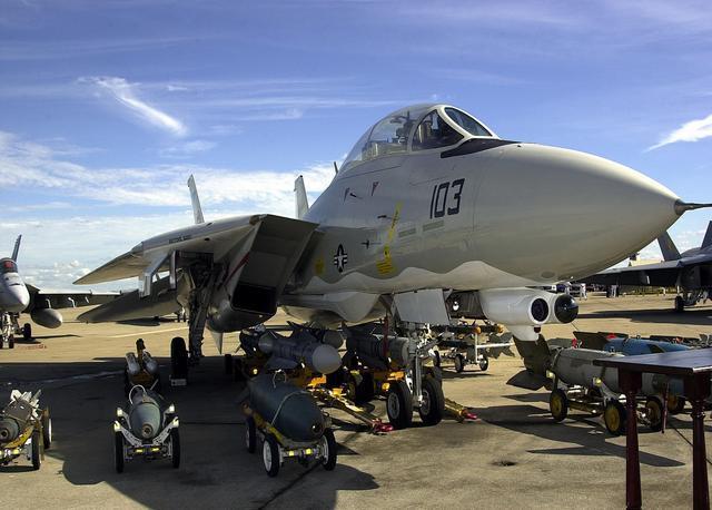 就算有机会见到其它型号的战斗机,也根本无法与F-14帅气的外表相提并论。你可能觉得F-14机身臃肿,还有个可以变动的后掠翼,机翼翼根处的翼盒不仅笨重还严重影响了美观,在以隐身战机光滑外表为美的今天,F-14其实真的不怎么好看,但在上个世纪后半页,真的没有哪一款战机能和F-14比颜值了。