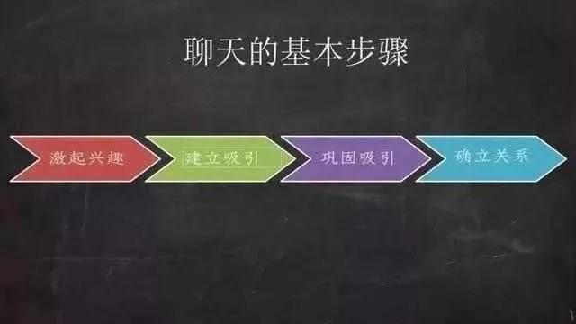 所以你聊天的四个步骤应该是:激起兴趣,建立吸引,巩固吸引,确立关系。