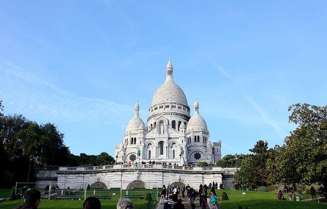 圣心大教堂坐落在巴黎最高的蒙马特山顶上,它始建于1876年,于1919年落成,是由全法国的忠实信徒捐款兴建的。它是这座城市最引人注目的地标之一,每年都会吸引无数的游客来参观。蒙马特山本身也很吸引人,因为它有美丽的风景。