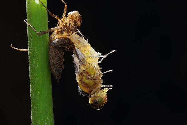 水虿是通过触角和腿,来感受水的波动,所以即使在完全黑暗的情况下,水虿也能准确的捕捉到猎物,而且水虿羽化成蜻蜓的过程也是在晚上进行,因为白天的太阳照射,容易蒸发掉水分,导致翅膀破裂,而这时的水虿会不吃不喝,而且腹部朝上,因为它羽化的时候只能在水和空气交接的地方呼吸。
