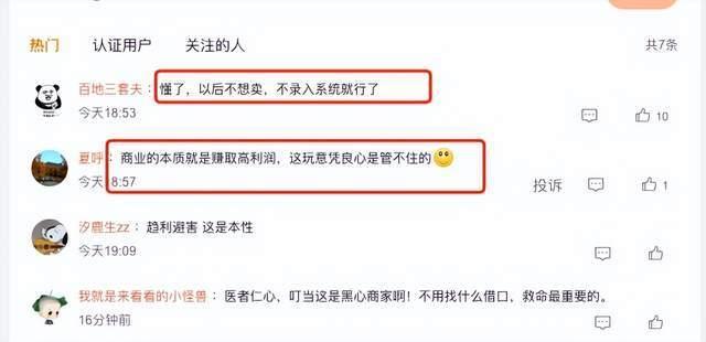 还有网友表示:「懂了,以后不想卖,不录入系统就行了」「医者仁心,叮当这是黑心商家啊!不用找什么借口,救命最重要的。」