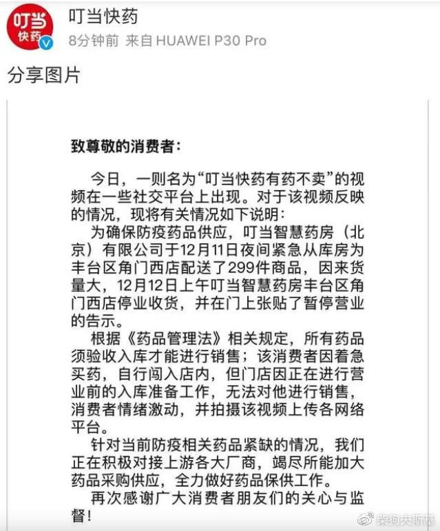 有药不卖被指「囤积居奇」?别让叮当快药「跑了」……