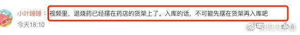 也有网友表示:视频里,退烧药已经摆在药店的货架上了。入库的话,不可能先摆在货架再入库吧。