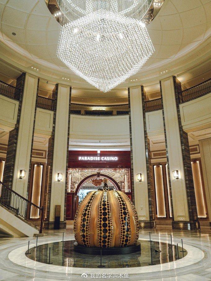 大堂中央是我超喜欢的草间弥生(Kusama Yayoi)《金黄南瓜 Great Giant Pumpkin》,2019年的合影来对比一下,我好像胖了一圈哈哈。