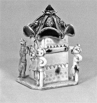 河北定州静志寺塔基地宫出土的黑白釉四人抬轿子模型,该模型烧造于宋太宗时期