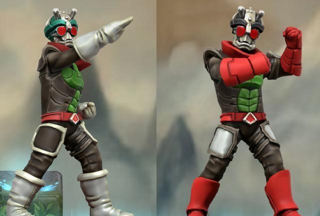 通过颜色就知道这是假面骑士一号与二号,他俩是最早的换色骑士,一号四肢盔甲的颜色是银色,二号是红色,外形特征还是很明显的,就是这个新造型实在让人无法苟同,看不到蝗虫元素不说,还一副量产小兵的模样,也不知道二号啥时候进化。