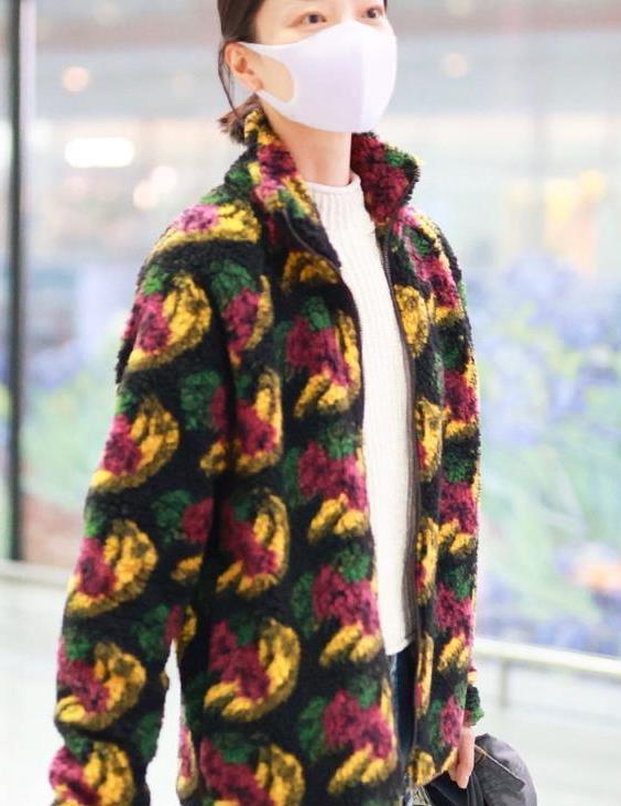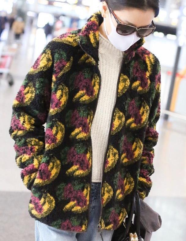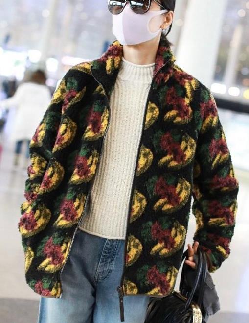 这次杜鹃现身机场的私服造型集时尚保暖为一体,暖和的同时又高级时尚感爆棚。杜鹃上身选择了一件近两年大火的摇粒绒印花外套,印花的设计给这件衣服增加了很多高级元素,如果是穿上其他人身上也许会觉得土气,但是穿在她身上却是爆棚的时尚潮流感,这真是模特的最大优点了。