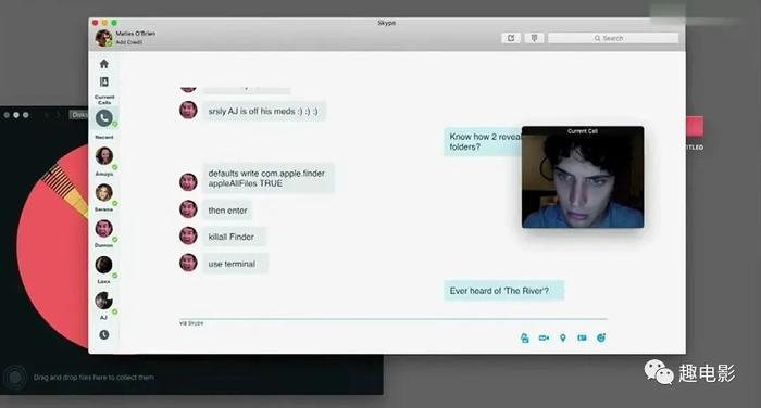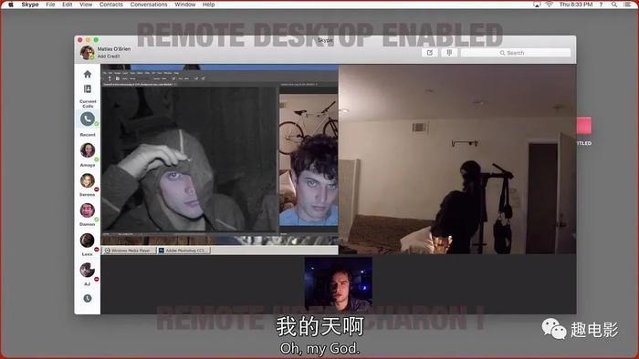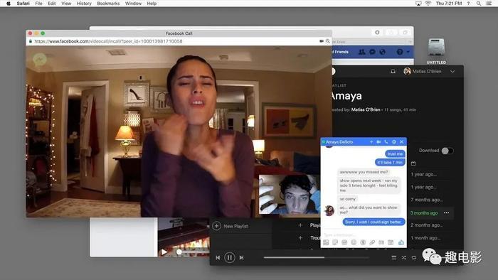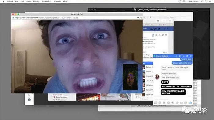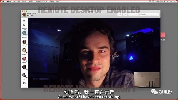 回家后,碰巧还猜对了密码。在电脑上登录了自己的社交账号和女朋友阿玛雅(斯蒂芬妮·诺格拉斯 Stephanie Nogueras 饰)聊了起来。