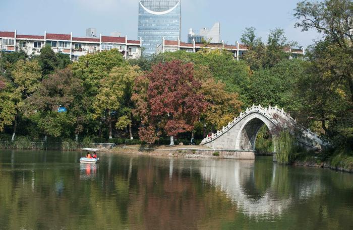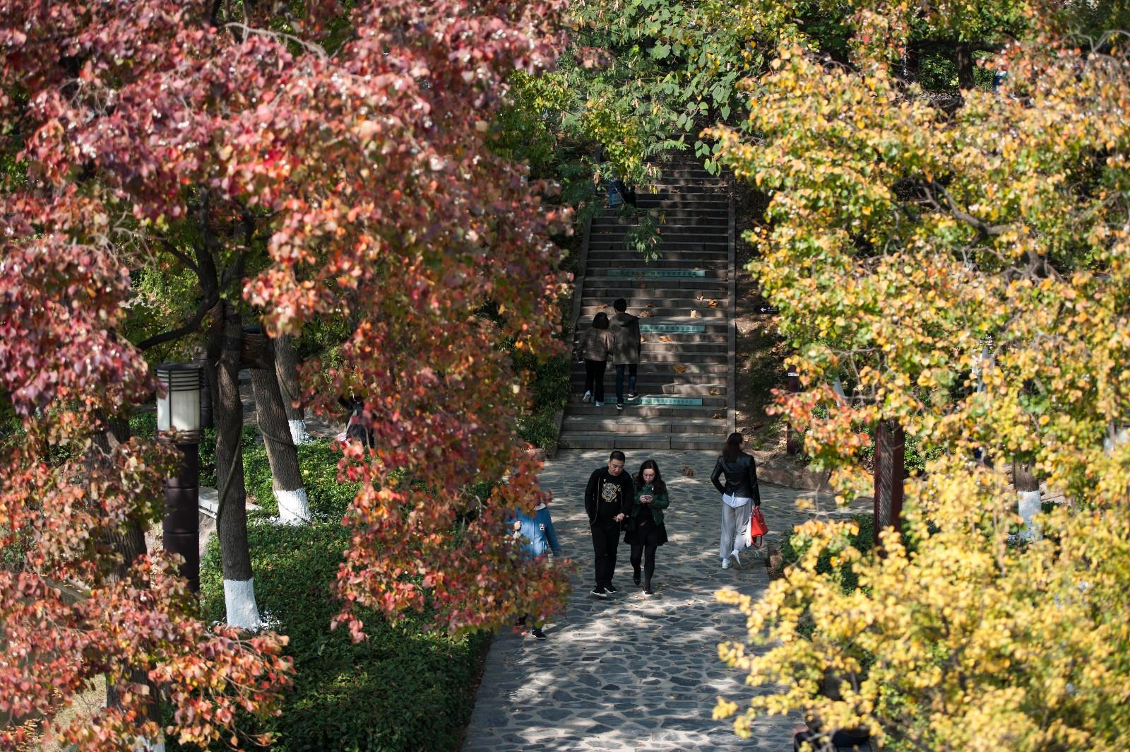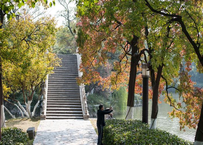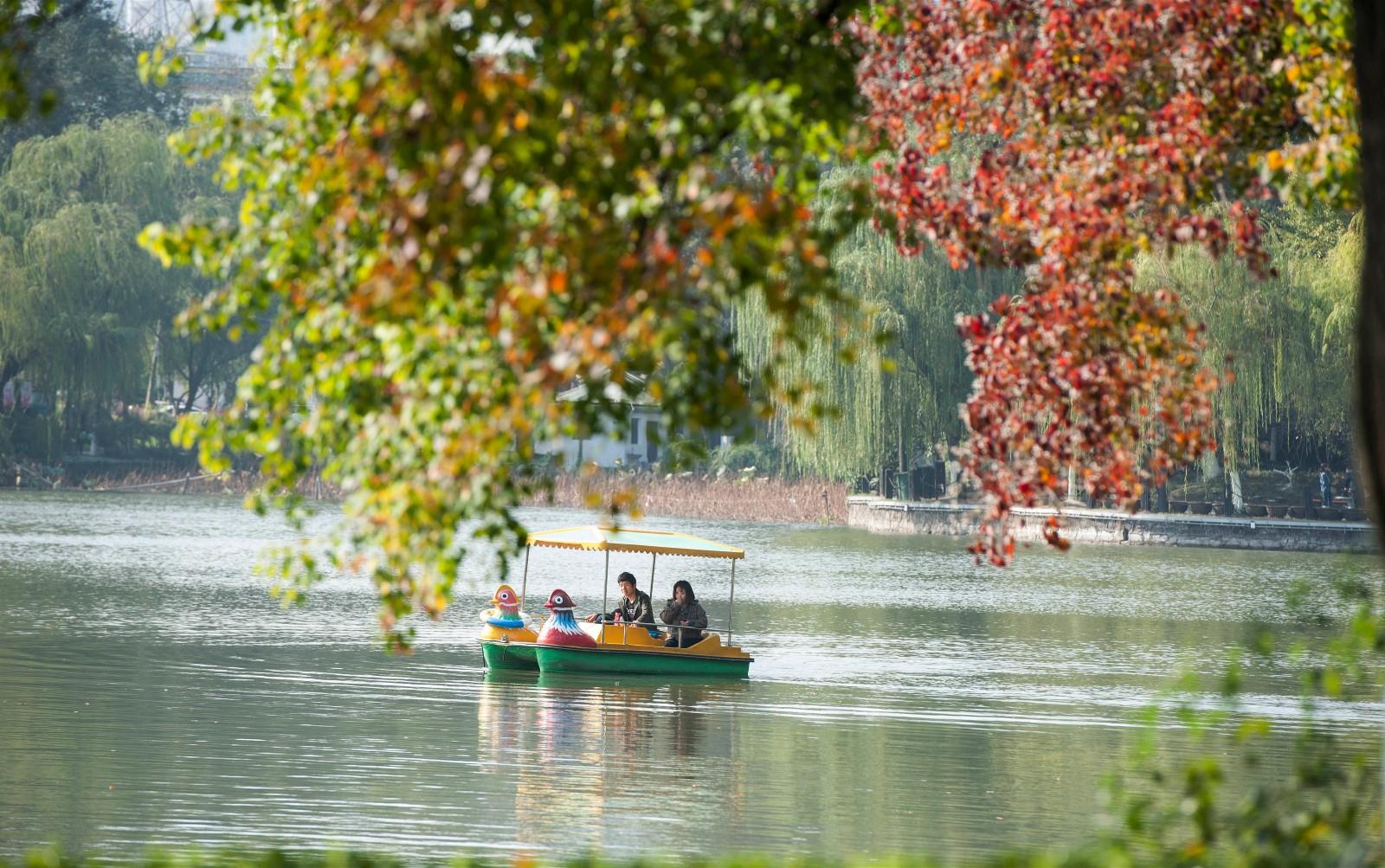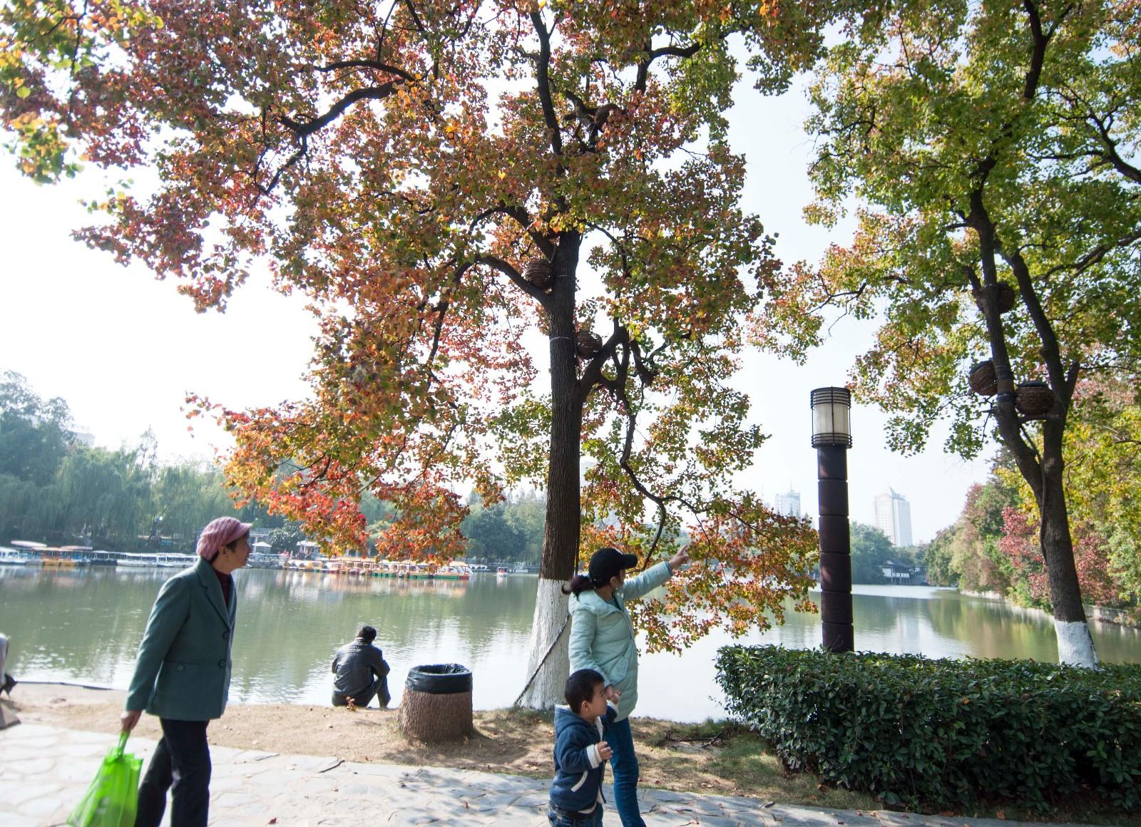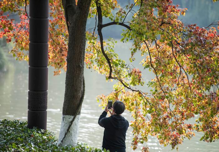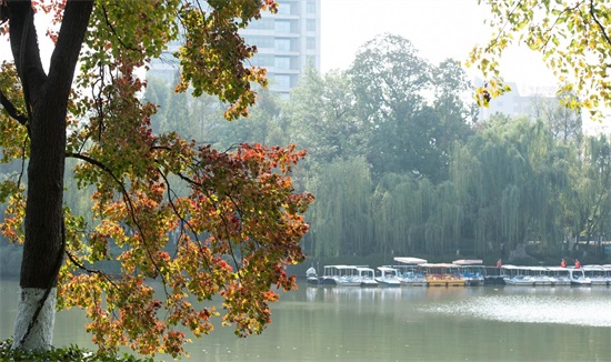 11月13日,合肥天气晴朗,气温回升,在初冬的暖暖的阳光照耀下,合肥包公园的树木变黄了、变红了,绚丽多彩的景色美极了。
