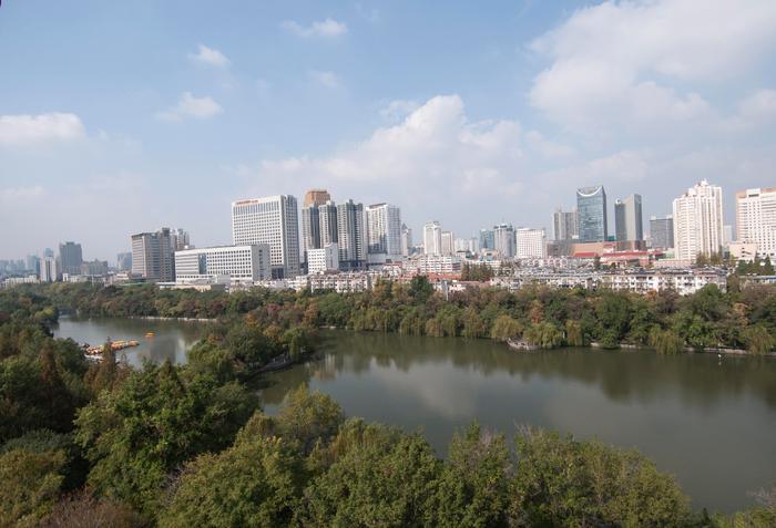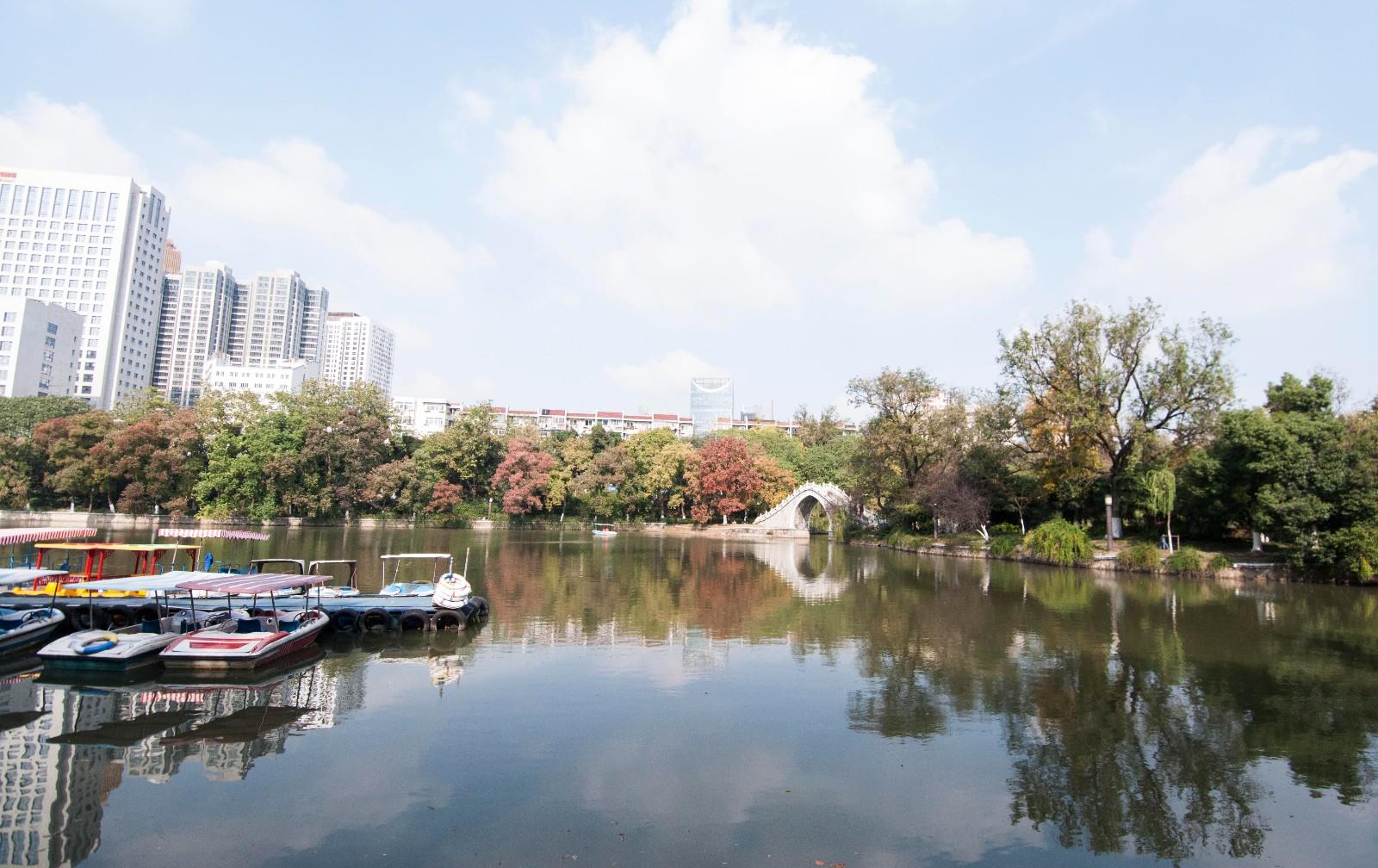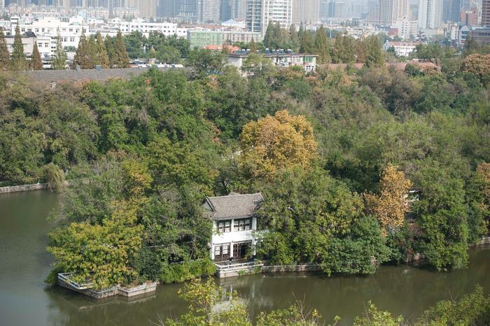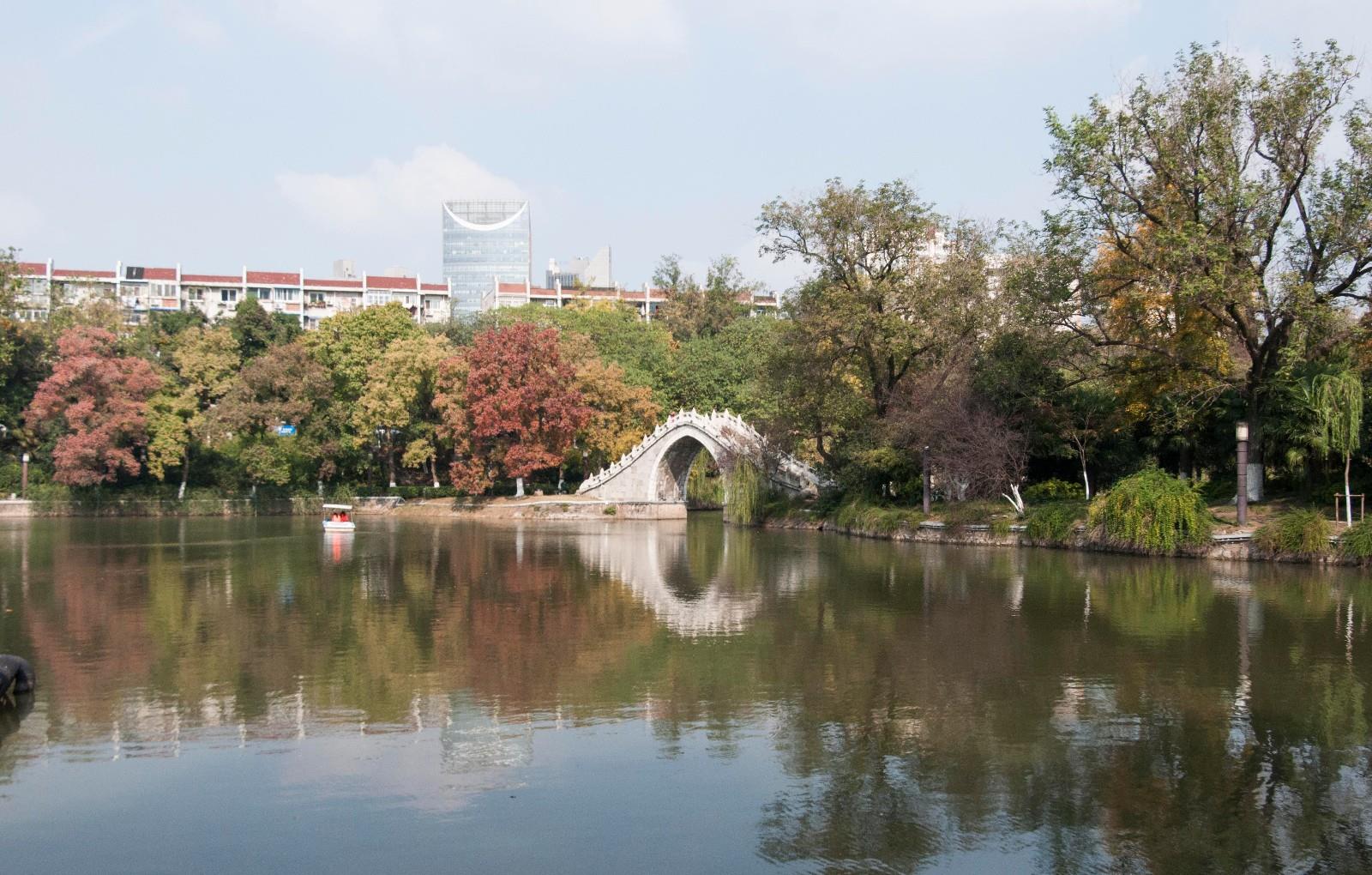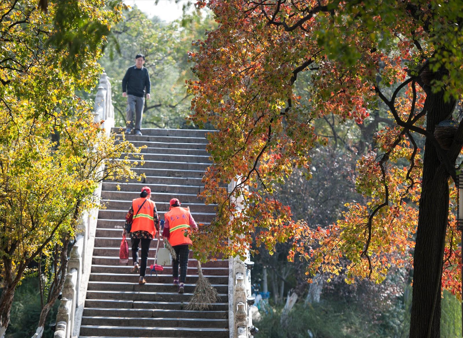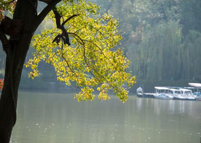 11月13日,合肥天气晴朗,气温回升,在初冬的暖暖的阳光照耀下,合肥包公园的树木变黄了、变红了,绚丽多彩的景色美极了。