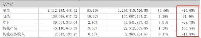 一直以来,榨菜、泡菜和萝卜都是涪陵榨菜的主要收入来源,但涪陵榨菜的榨菜销量从2022年上半年的6.59万吨下滑到了今年上半年的5.8万吨,跌幅达到了12%。