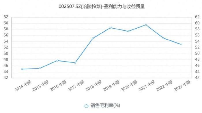 数据显示,2023年上半年,涪陵榨菜实现营收13.37亿元,同比下跌5.97%;归母净利润4.70亿元,同比下跌8.87%;扣非归母净利润4.32亿元,同比下跌9.84%。