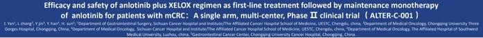 安罗替尼是中国自主研发的新型口服多靶点酪氨酸激酶抑制剂,它既能抑制肿瘤血管生成,也能直接抑制肿瘤细胞增殖,已在国内获批小细胞肺癌、非小细胞肺癌、软组织肉瘤和甲状腺髓样癌的治疗适应证。前期研究表明,安罗替尼对复发、难治型晚期结直肠癌有效且安全,基于此我们设计了ALTER-C-001研究,一线采用安罗替尼联合标准CAPEOX方案序贯安罗替尼单药维持治疗,以探索该治疗组合对晚期不可切除结直肠癌的治疗作用以及安全性。