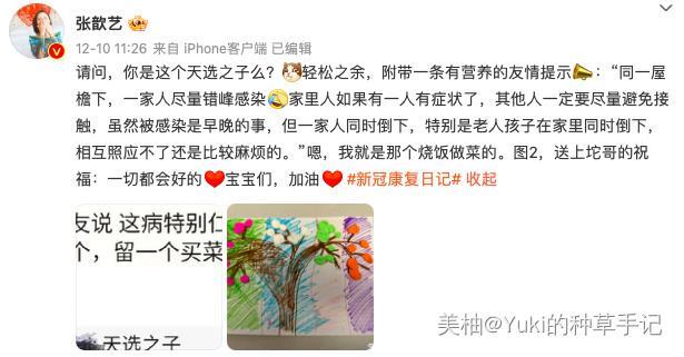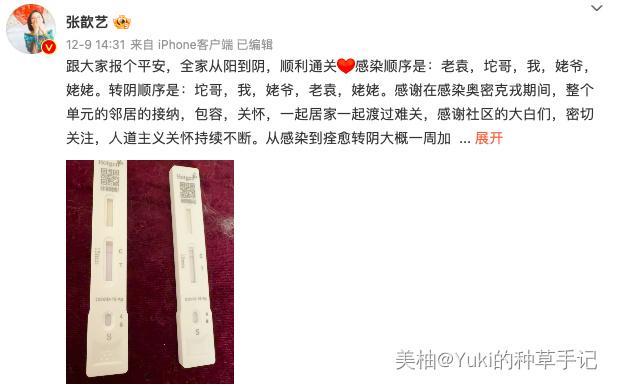 可能是自己经历过这件事带来的冲击,所以,张歆艺在微博直接分享了家人从感染到痊愈的过程,希望能给粉丝提供一些帮助。