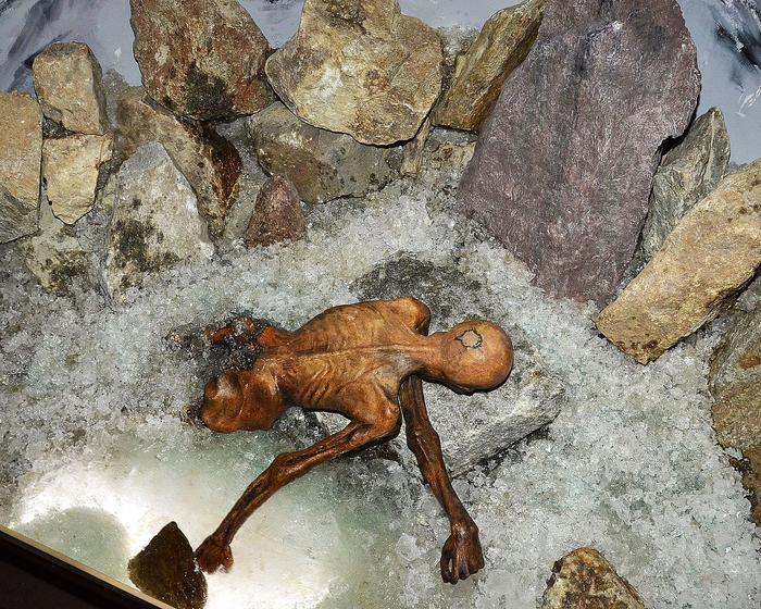 科学家们在对冰人进行一种被称作层面X线照相术的技术测试后,发现冰人的左肩下有一枚箭头,在骨骼上还发现箭头射入其身体后留下的痕迹。