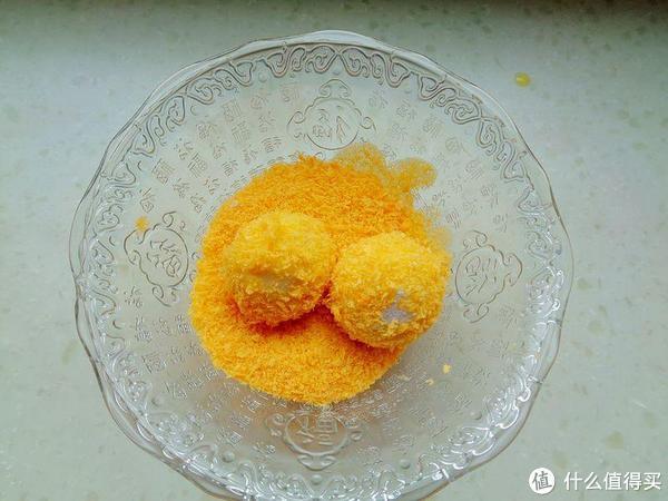 2、过凉水这样汤圆比较劲道圆润不易变软,好炸,好裹住蛋液和面包糠