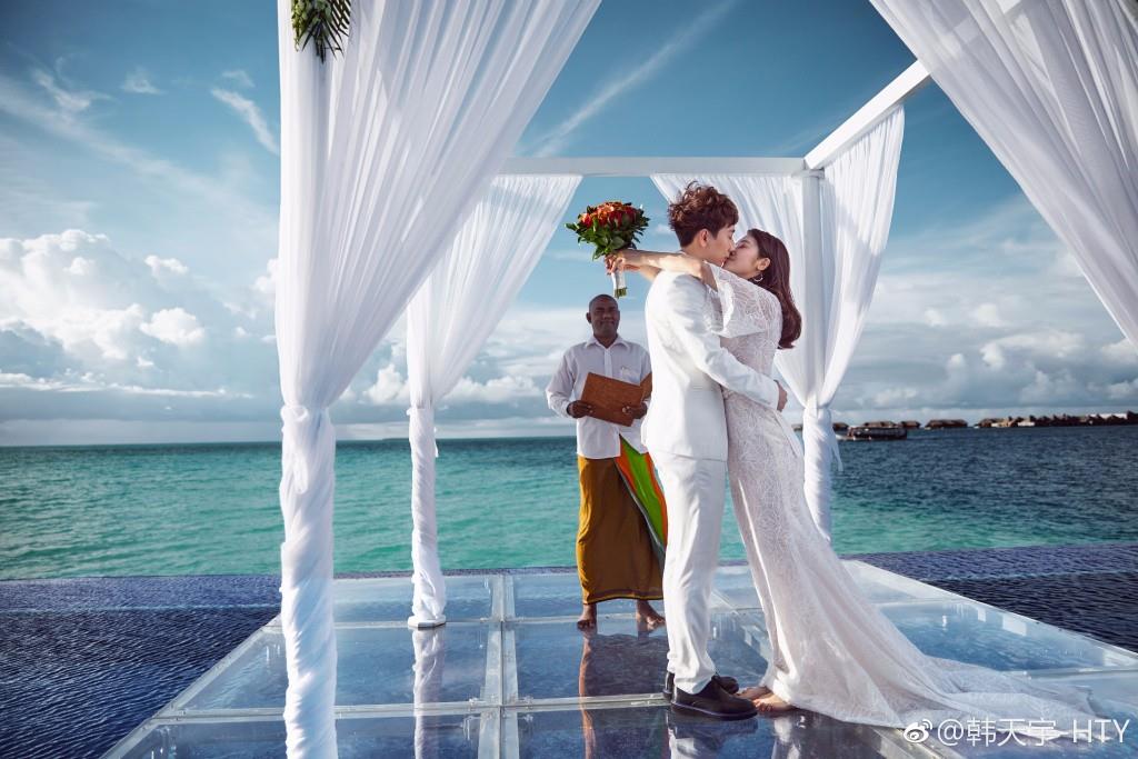 今日,短道小王子韩天宇与同为世界冠军的刘秋宏举行婚礼。