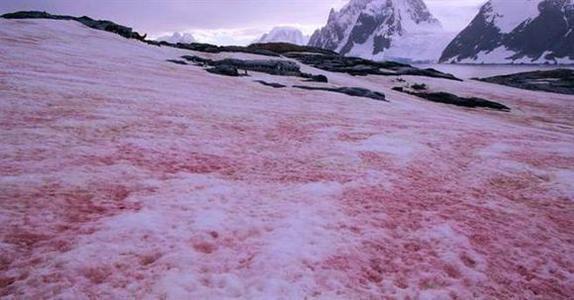 通常在晚春和夏季的时候,在高山和极地地区会飘粉红色的西瓜雪。这听起来十分新奇,但在美国加利福尼亚州的内华达山就曾经发生过。