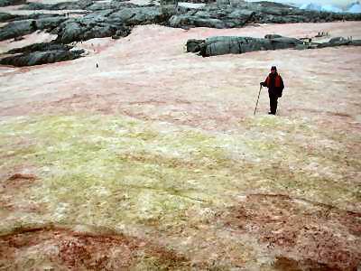 有人推测可能是普通冰雪被某种矿物或岩石散落的红色氧化物污染造成的。但让人不解的是,红色的雪总是在当地的晚春和夏季出现,难道冰雪被污染也要选择时间。