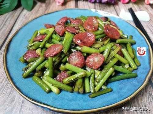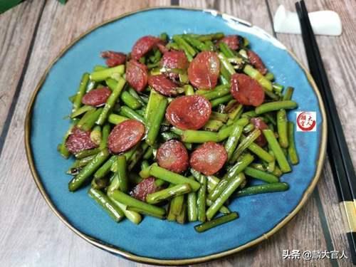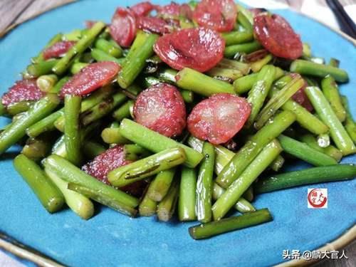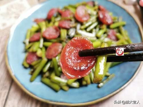 本文核心词:香肠,美食,腊肠,蒜薹,蒜苔,炒腊肠,炒香肠,炒蒜薹,蒜薹炒香肠,蒜薹炒腊肠