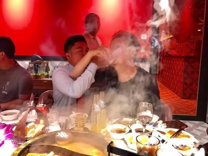 在和网友合影的时候还举着一杯白酒面带微笑脸色红润状态大好,更加令人非常吃惊的是他还和这个船上的一个小伙子喝上了交杯酒,也许是喝酒喝尽兴了才这么玩,两人喝着交杯酒,桌子上的热火锅热气腾腾,感觉他就像一位老神仙一样享受这一切,看得出来他是在游艇的包间里吃的饭。
