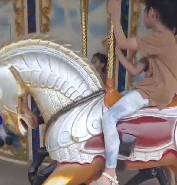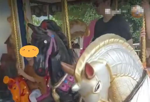 朱亚文携妻女回老家,陪两个女儿玩旋转木马,哈哈和妹妹似双胞胎