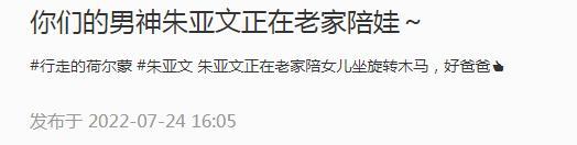 7月24日,有网友分享出在江苏省盐城市偶遇到朱亚文动态,并激动附文:“你们的男神朱亚文正在老家陪娃”,文末不忘夸赞朱亚文是好爸爸。