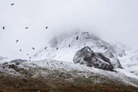 雪山海拔6000多米,拥有不同的垂直自然带,风景独特。