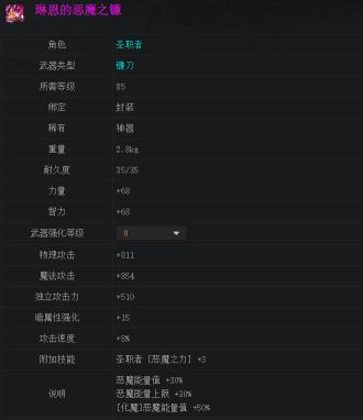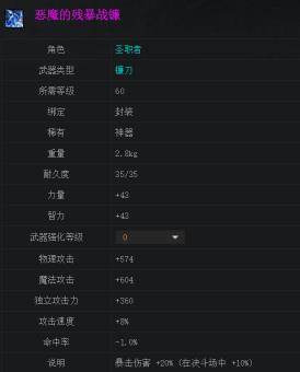 恶魔的残暴战镰,很残暴,暴击伤害加20%。外观很奇葩,不予评价!