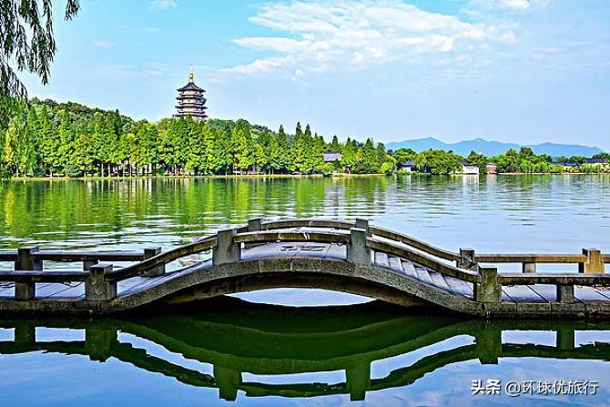 西湖,位于浙江省杭州市西湖区龙井路1号,杭州市区西部,景区总面积49平方千米,汇水面积为21.22平方千米,湖面面积为6.38平方千米。