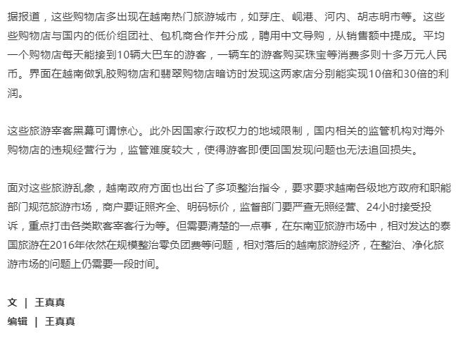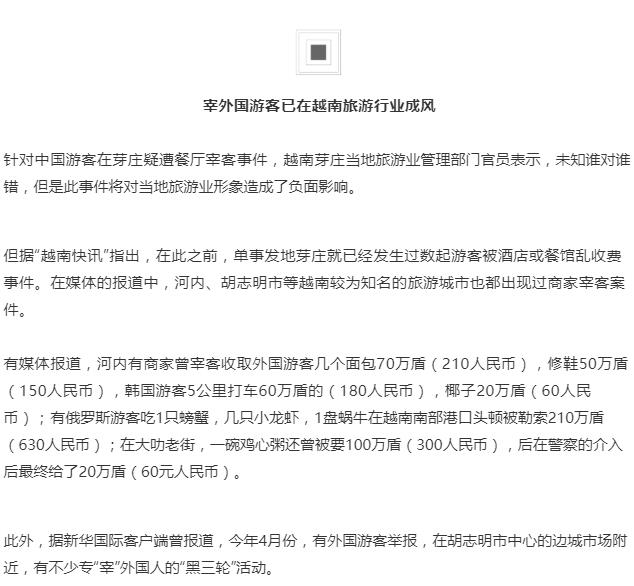 虽然相较于东南亚地区的旅游楷模泰国(2017年外国游客总数超3500万人次,其中中国游客量超980万人次)的同年旅游业绩,越南上存在较大差距。但旅游处于迅速上升期的越南,却已开始暴露出诸多的以宰客为主要表现形式的旅游恶性。