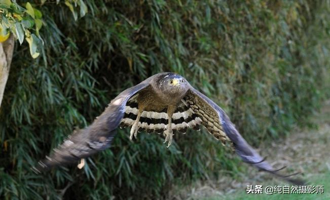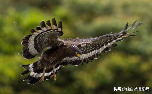 蛇雕(学名:Spilornis cheela)全长61~73厘米,大中型鹰类。头顶具黑色杂白的圆形羽冠,覆盖后头。上体暗褐色,下体土黄色,颏、喉具暗褐色细横纹,腹部有黑白两色虫眼斑。飞羽暗褐色,羽端具白色羽缘;尾黑色,中间有一条宽的淡褐色带斑:尾下覆羽白色。喙灰绿色,蜡膜黄色。跗蹠及趾黄色,爪黑色。