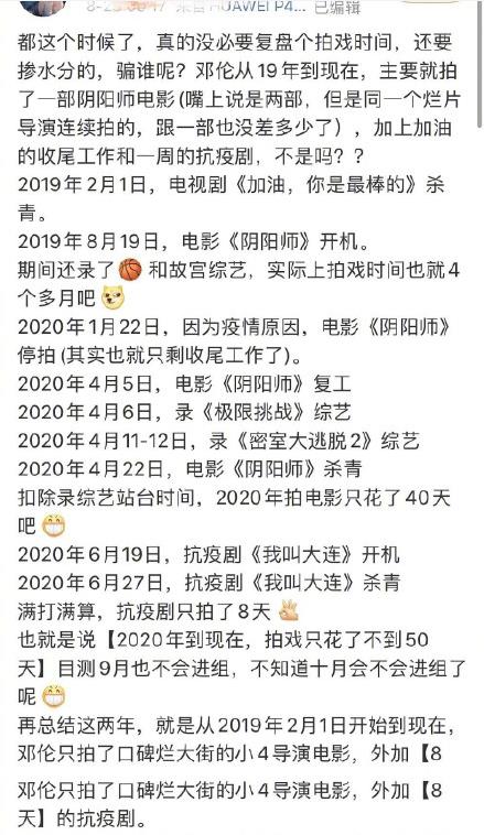 粉丝统计过,2020年邓伦仅仅进组50天。