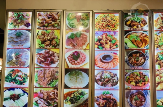 一整面墙的菜单,起码有上百种不同的菜品,搭配上实拍的图片,让游品瞬间就胃口大开了。
