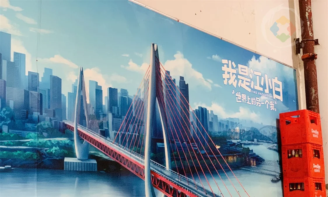 店铺从外面看起来很不起眼,在一栋商铺的二楼,楼梯间都是重庆特色白酒的广告,有一种不着调的感觉。