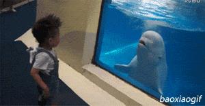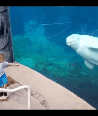 然而在水族馆里,它们根本找不到交流对象,为了防止白鲸交配或是打架,海洋馆通常不会将两只白鲸放在一起,对于一个7、8岁的孩子来说,它最大的乐趣就是交流,没有同类的时候,它们会选择将交流对象换成人类。