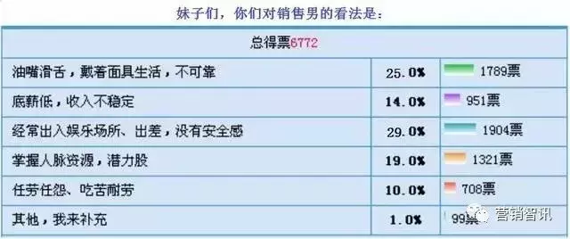 为什么会出现这种情况呢?因为在妹子心中,销售男真的不怎么样。