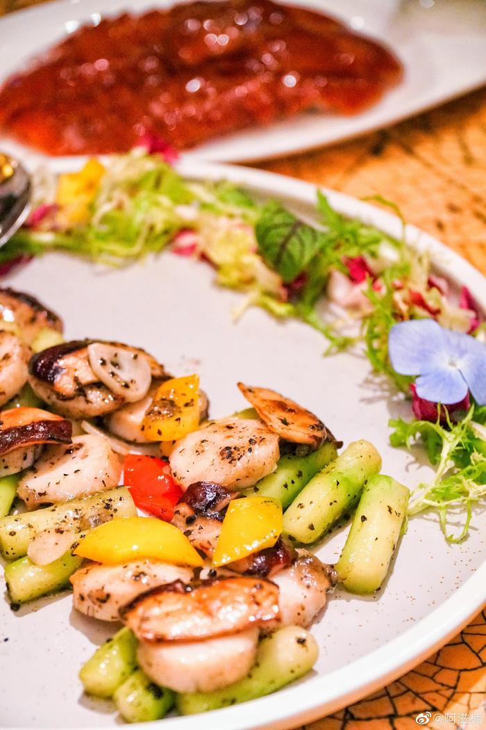 京城每日美食吃不够北京嘉里大酒店来了新任总厨胡兆明大师傅,两年前曾在首尔四季的粤餐厅独得米其林一星。这次为海天阁带来十道大餐。特选了几道最爱:黑蒜瑶柱炖竹丝鸡,吨了八小时以上味鲜醇厚。山椒汁肉沫波士顿龙虾,带有些川菜的小味道,虾肉饱满多汁,很入味的恰到好处。兰度黑菌炒带子,入口圆润丰满丝滑。冶味酱萝卜澳洲和牛肉卷,牛肉的肉质好感人。配上香格里拉夏日微风特调鸡尾酒,完美! @新浪旅游 @鲜城北京
