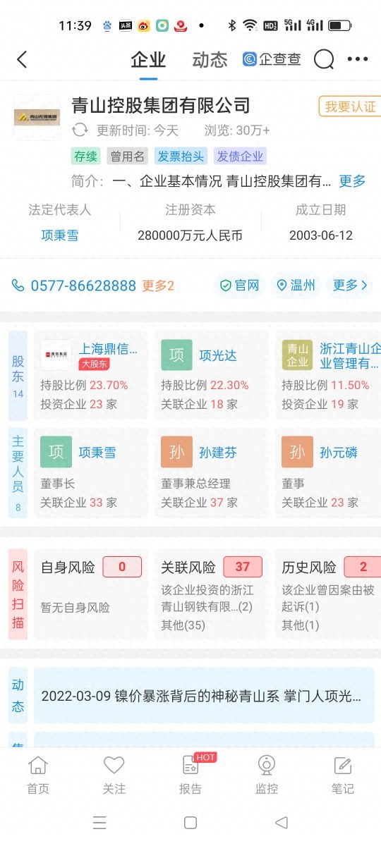 青山控股企查查简介