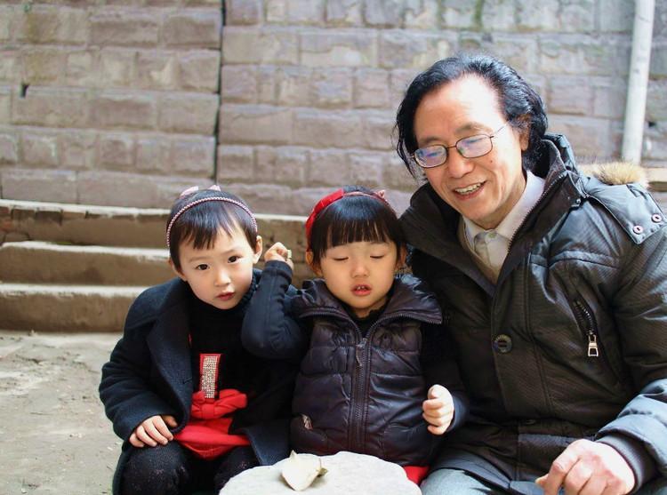 看看我怀里抱的这两个孩子,是不是有那么一点与《红楼梦》里小黛玉、小宝钗挂像啊!连我自己都意想不到,研究了30余年的红学,竟然会在我这个红学家自己的家里,孕育出一双形神毕肖的小黛玉、小宝钗来。她们真的是我这个自幼贫苦的孤儿所养育出来的嫡亲第三代:一个是随我儿子、儿媳前两年生活在意大利,今年又一起到日本生活大约一两年,现刚从日本回老家过春节的唯一孙女儿芷青(小名豆豆,四岁,手拿树叶者);另一个是生长在自贡、也到北京和我生活过一年的外孙女儿罗曼蒂(小名妞妞,三岁半)。有时我甚至异想天开:反正离异多年不曾再婚,何不再找一个没生育过的作续弦,没准儿还能生出一个又聪慧又善良的小宝玉呢!作此奇想,是因为我那占据了好几间屋子的数万卷珍贵藏书(少说也价值好几百万吧),缺了一个肩负着承传家族衣钵和文化血脉的男性公民来继续保管,心里总有些遗憾。儿子和儿媳都是双生子女,要让他们再生一个,以当今的国策,怕是难于上青天!