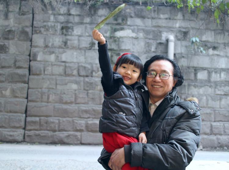 “小宝钗”虽然性情温顺,竞争之心终归是有的。她立即扑上来——“我也要让爷爷抱抱,你看我的树叶好长,举得又比你高!”我分别抱了小外孙女儿和小孙女儿之后,为了一碗水端平,又将两个小家伙一块儿抱起来(就像开头那张照片一样,只可惜拍那照片时我恰好在眨眼睛,有点美中不足)。