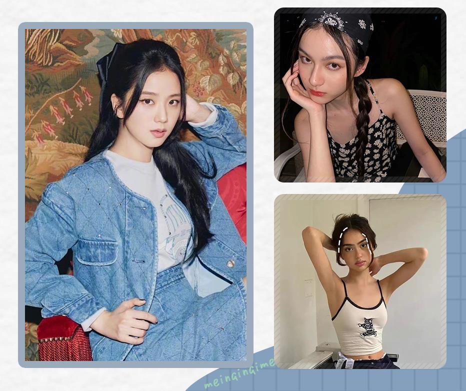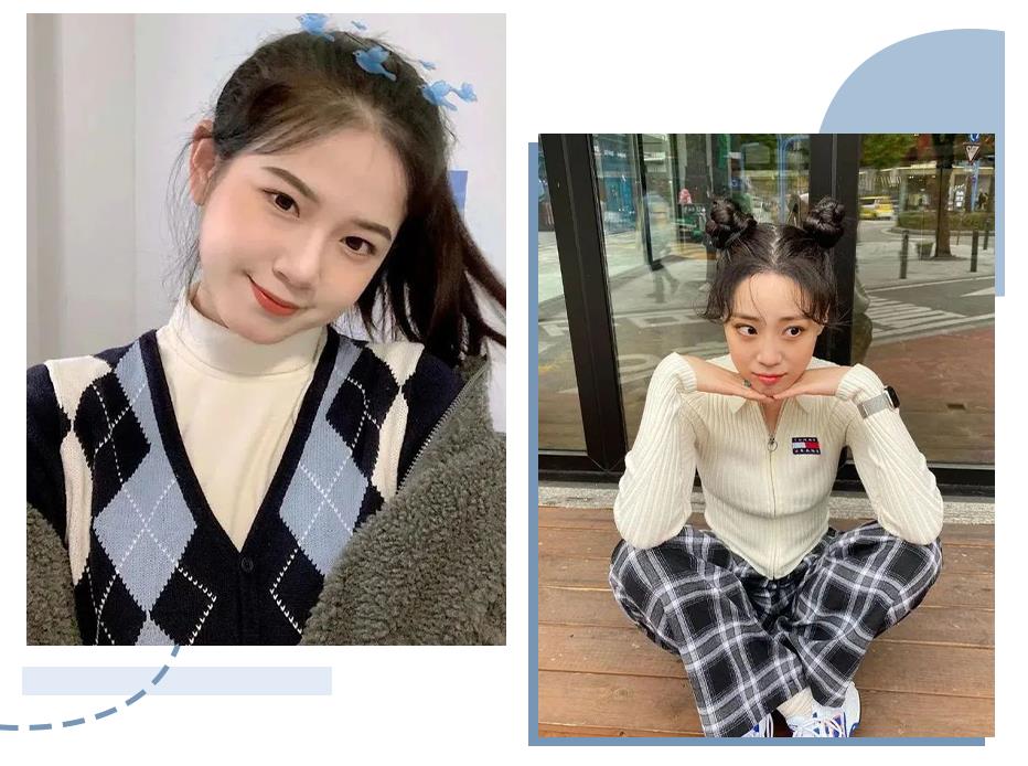姐妹们也可以用卷发棒打理下两边的刘海,看起来有种韩国小姐姐的精致感,配上低扎发,很是温婉。