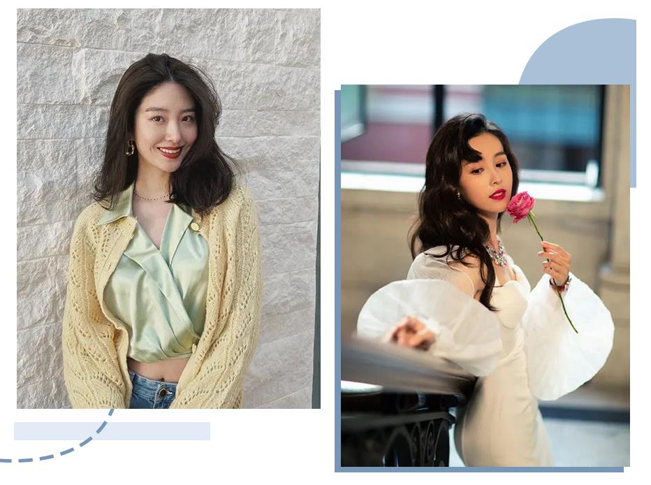 龙须刘海可以帮助修饰原本有些凹陷的脸颊,再加上弧度大的卷发,给人一种温柔慵懒的感觉,很会扬长避短!
