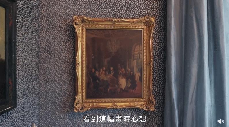给自己小时候的卧室在别墅二楼,是一间浅蓝色碎花风格的儿童房。路易十六时期的白漆单人木床,墙上挂满了油画,正对床侧的一幅是德国绘画大师门采尔的摹本,画的是伏尔泰和国王共进晚餐的盛景。