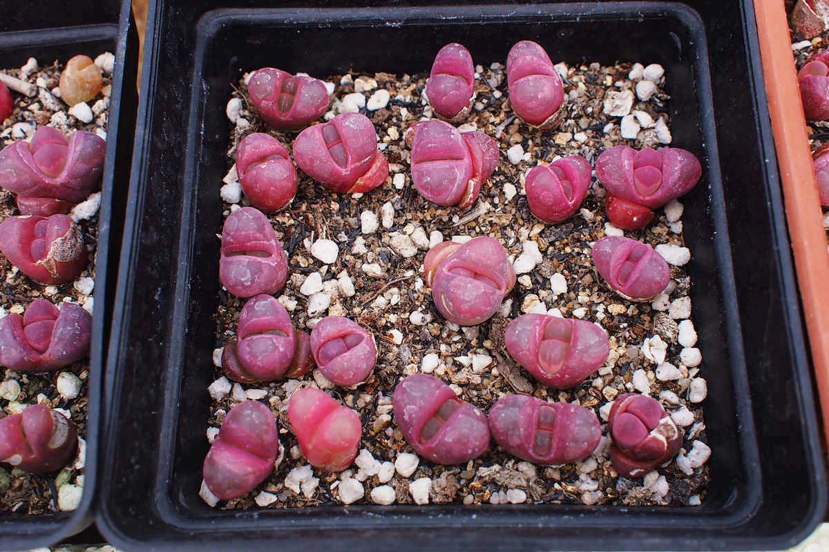 同样的,几乎凡是红色系,尤其是酒红色系的生石花,都是大热的珍品。例如红菊水玉、紫石榴玉、红橄榄玉、赤阳玉、紫李夫人等。都是美丽惊人但价格颇高的品种。