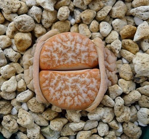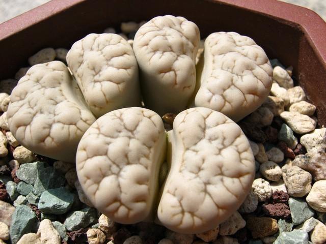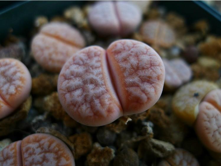 荒玉系是巨型种,不喜欢分头,单头最大可达5~6cm。是一个很强健的品种,喜光喜水,夏天休眠特征不明显。成年后的荒玉纹路凹凸明显,形成核桃一样的脑花质感。在生石花中独树一帜。